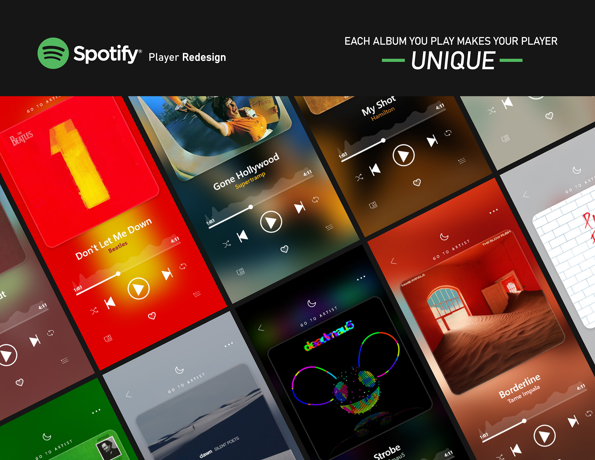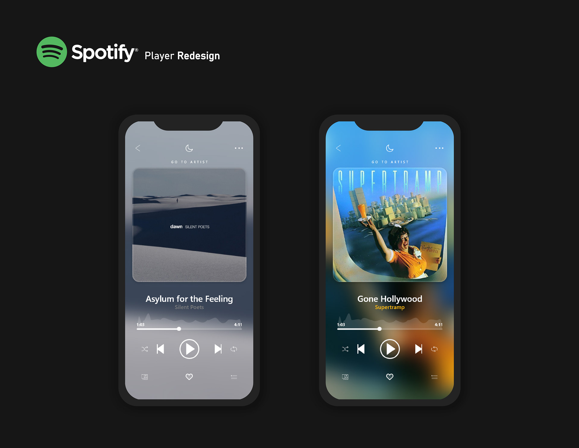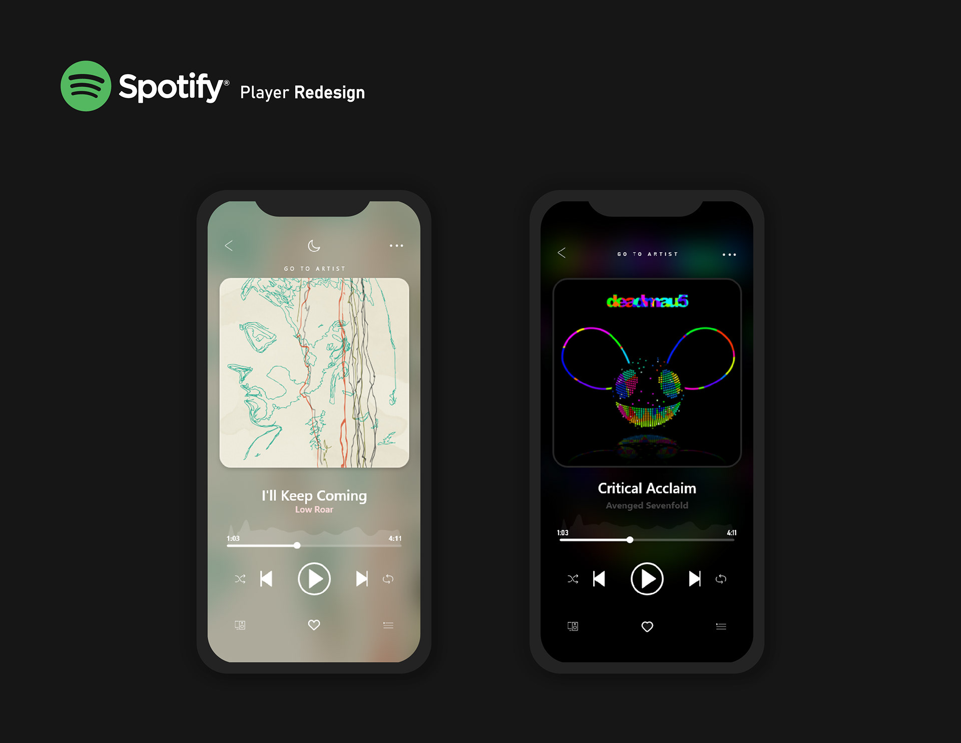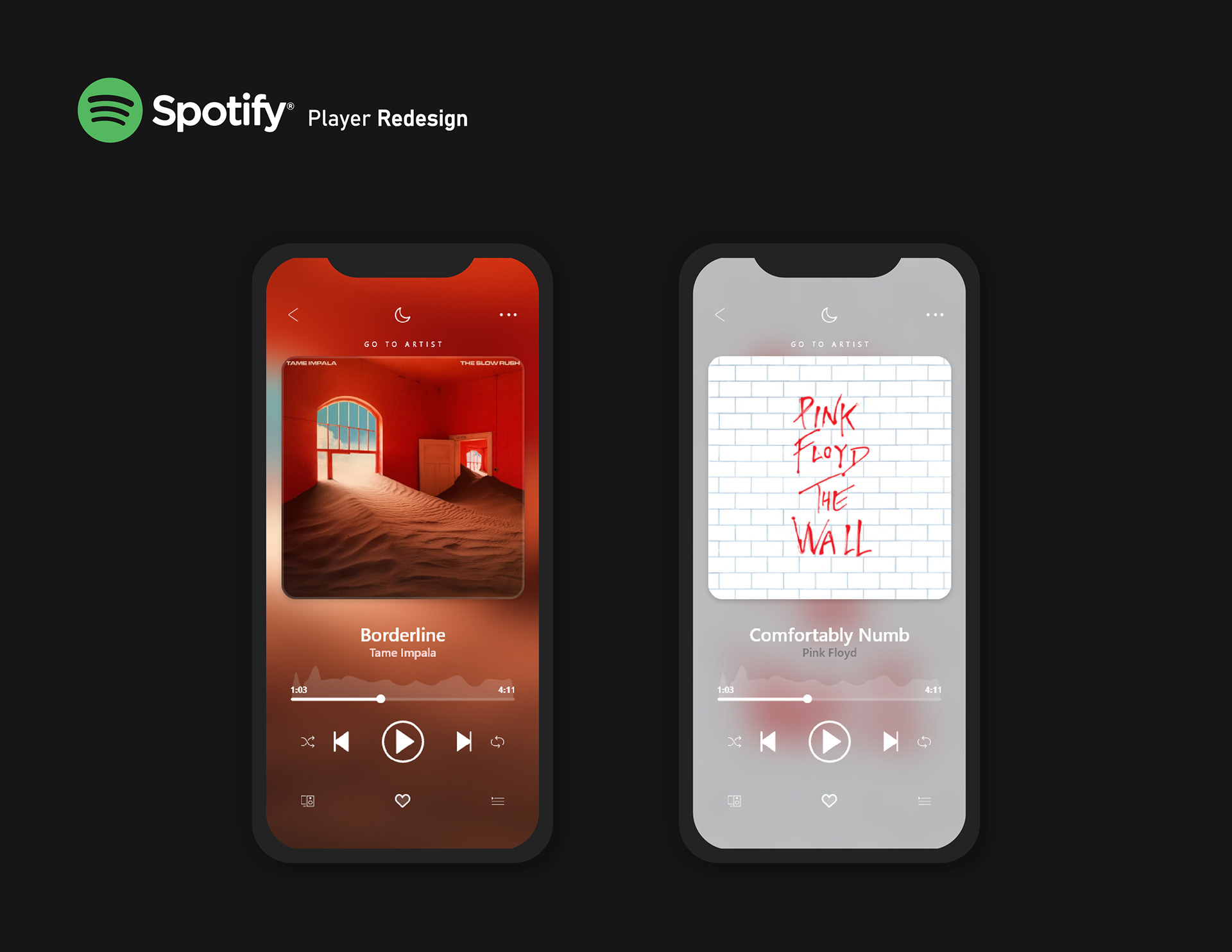 This concept shows my vision of how I would redesign the Spotify Player, adding some basic and new functions, as well as reestablishing how I imagine how the player looks and feels.